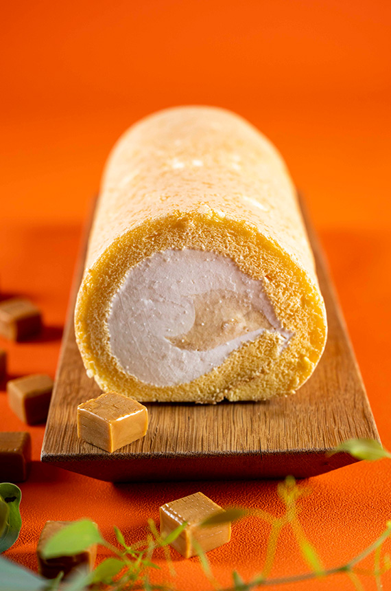 味噌キャラメルカスタードと、はぴねす乳酸菌Ⓡ入りの味噌クリームを味噌と国産チーズが香る米粉入り生地でひと巻きしました 【関西万博で提供】堂島味噌キャラメルチーズロール