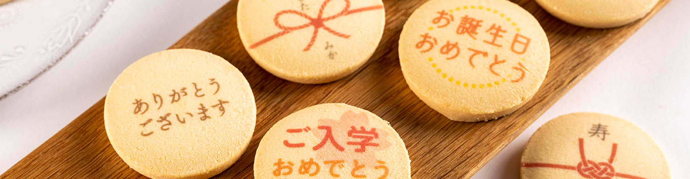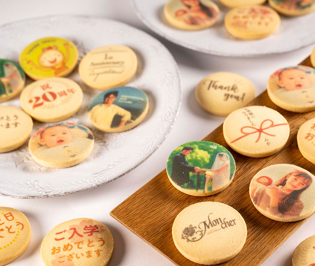 クッキーにロゴ・写真・お好きな文字をプリントいたします。