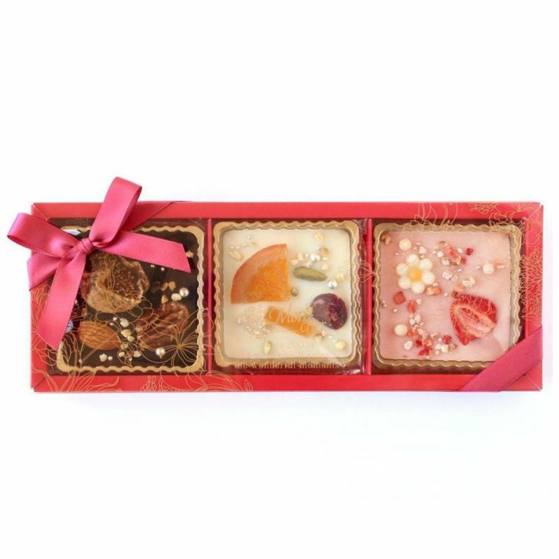 タブレット型ショコラをフルーツやナッツで華やかにデコレーションしました。