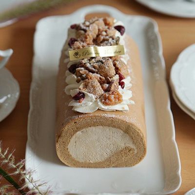 生地とクリームに香り高い紅茶を合わせた、紅茶好きのためのロールケーキに、クランベリーやナッツで華やかにデコレーションしました。