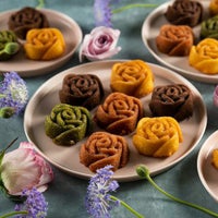 アーモンドプードルとバターを合わせた生地にシェフこだわりの素材を混ぜ込んでバラの型に流し込み、オーブンでふっくら香ばしく焼き上げました。