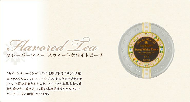他の画像を見る フレーバーティー スウィートホワイトピーチ 宅配便(冷蔵可) ¥ 864 税込 常温便 香る紅茶 スリランカ(旧称セイロン)ヌワラエリアの茶葉に「ピーチ」の華やぐ香りをプラスしたフレーバーティー。 詳細を見る お気に入りに登録する